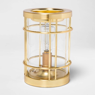 Keep your space smelling fresh without the hazards of a flame with this Edison Bulb Metal Scent Warmer from Threshold™. A soft halogen bulb creates a warm glow of light through the cutouts while acting as a safe heat source to melt the wax cubes. Crafted from metal in a bronze-tone finish, this metal and glass scent warmer is perfect for adding an elegant touch to your home while filling the air with a welcoming and clean aroma.