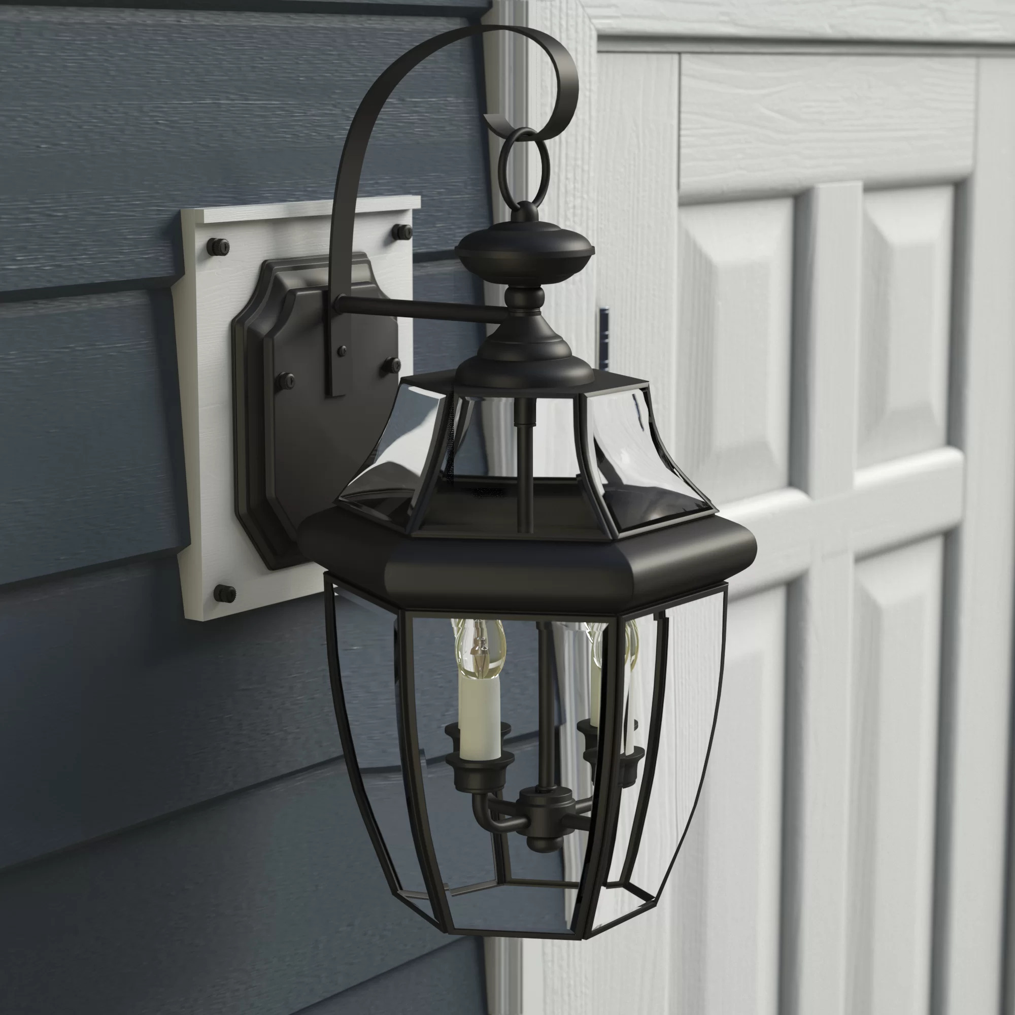 Add a touch of elegance to your outdoor space with this Washington Mews 3 – Bulb 22.5″ H Outdoor Wall Lantern. It is the perfect way to keep your patio or deck well-lit up. This wall lantern accommodates three 60-watt bulbs. The frame material of this lantern is made with brass, enabling years of functionality and durability. It is available in multiple stunning finishes, which you can choose from according to match your décor. This wall lantern has a glass shade, which has a clear finish. This 3 Light Outdoor Wall Lantern is UL listed. This beautiful lantern is easy to care for and can be wiped with a clean dry cloth.